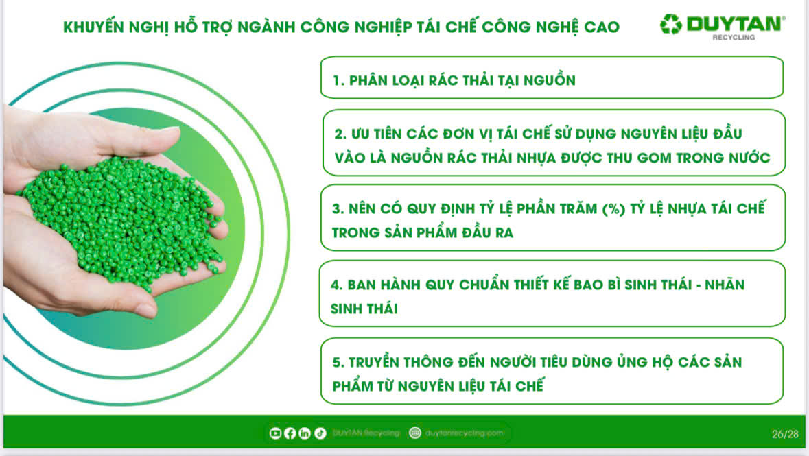 During the event, DUYTAN Recycling gathered valuable expert insights and shared five recommendations to support the development of Vietnam’s recycling industry.